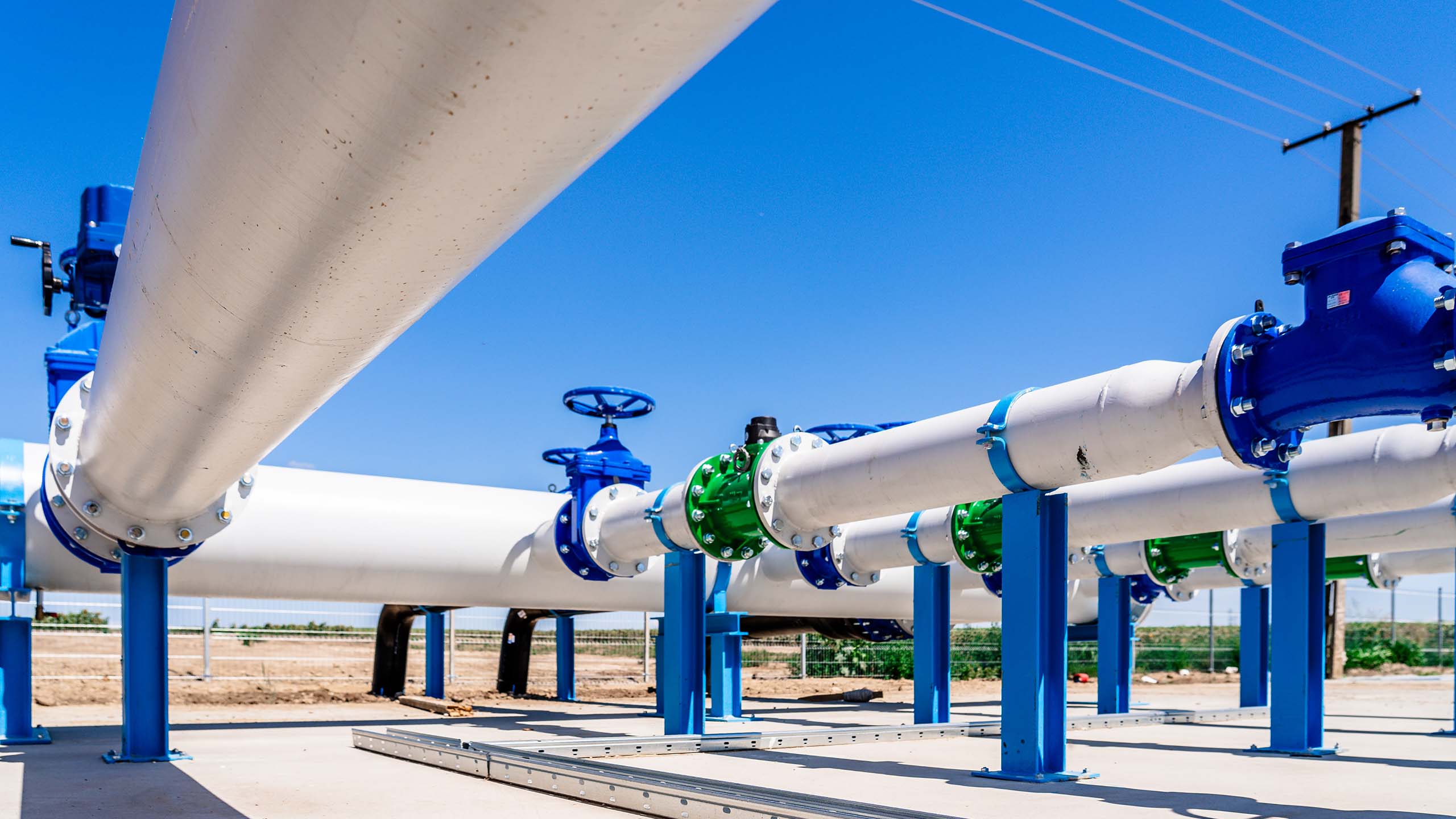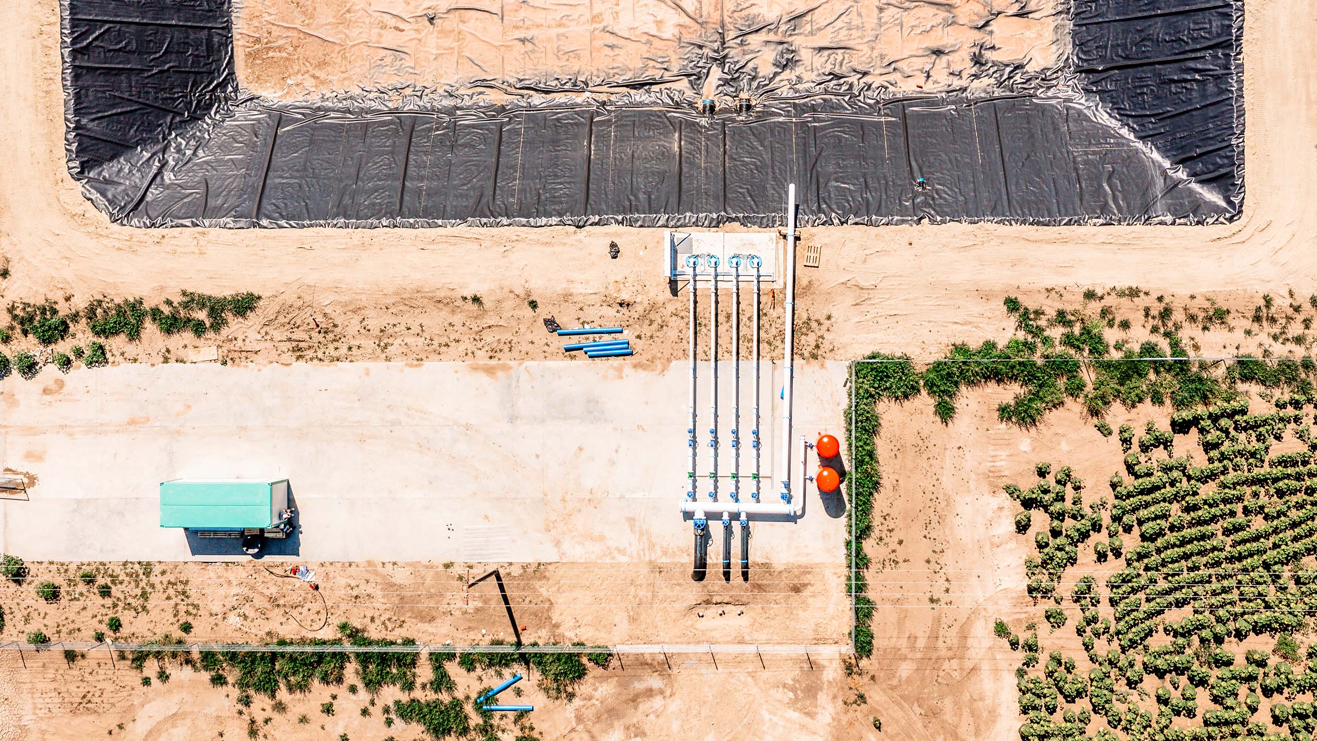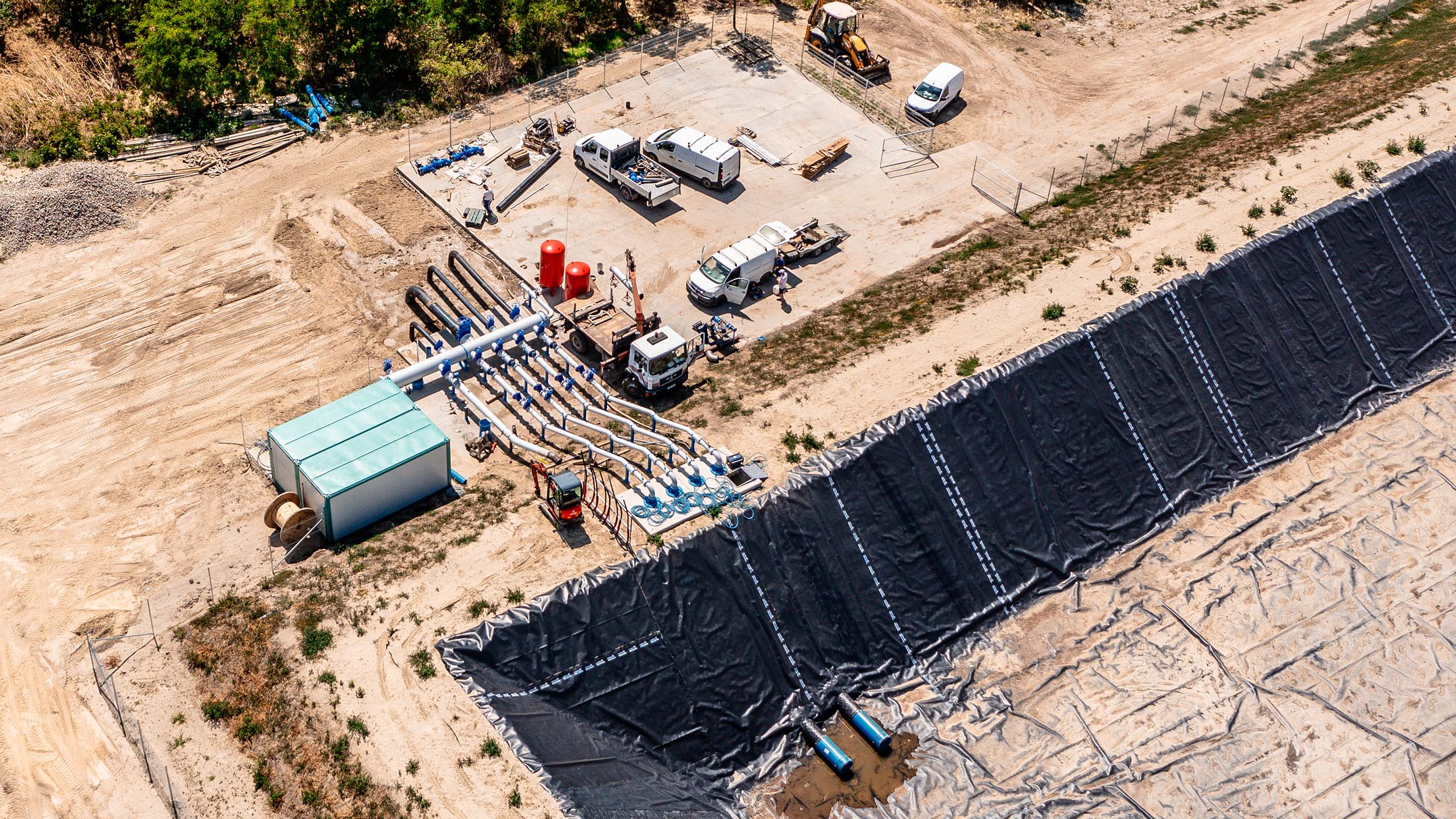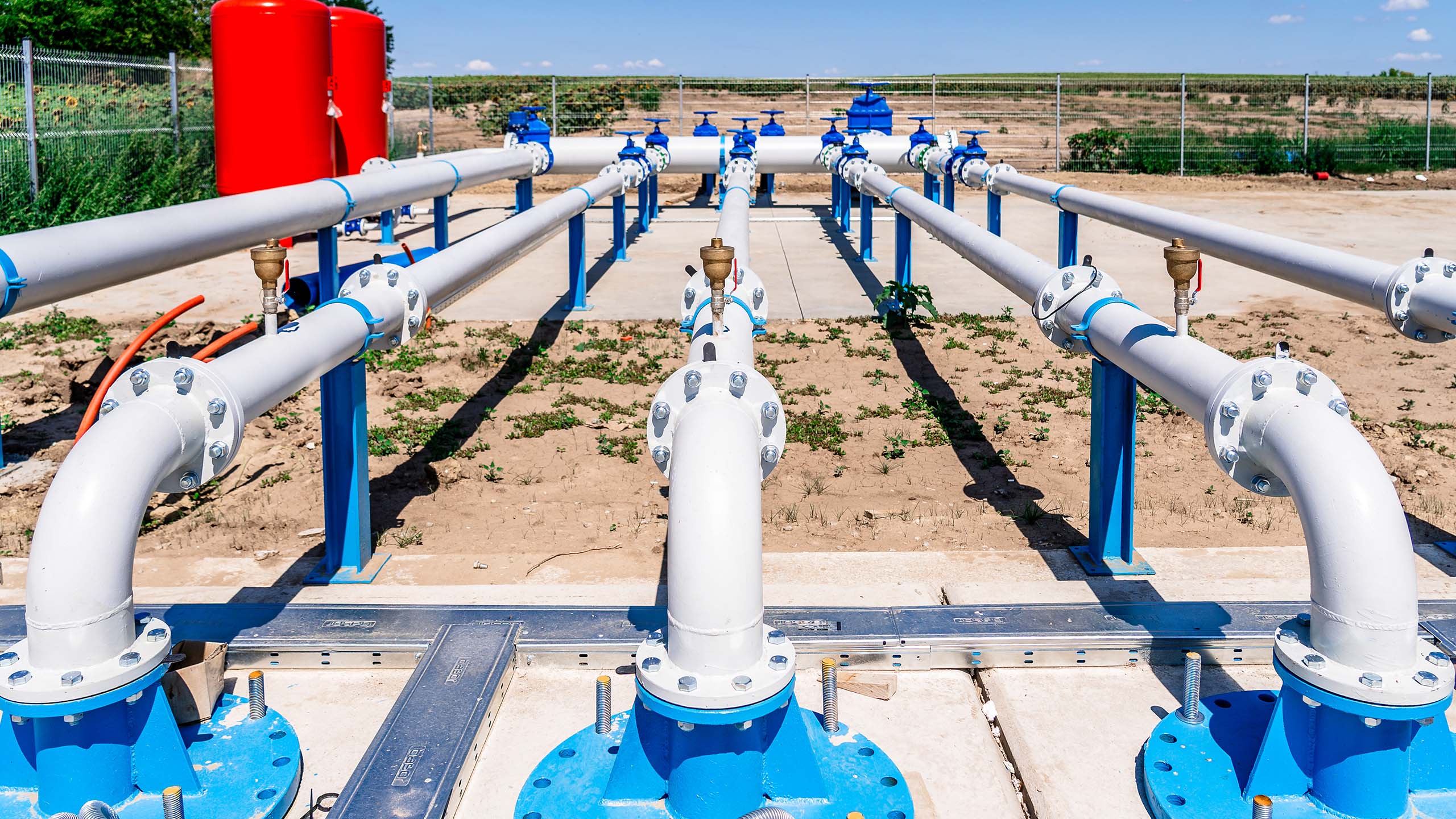 Komplex öntözési vízhálózat megvalósítása kúthálózattal, főnyomóvezetékekkel és nyomásfokozó állomásokkal, mezőgazdasági területek megbízható vízellátásához.